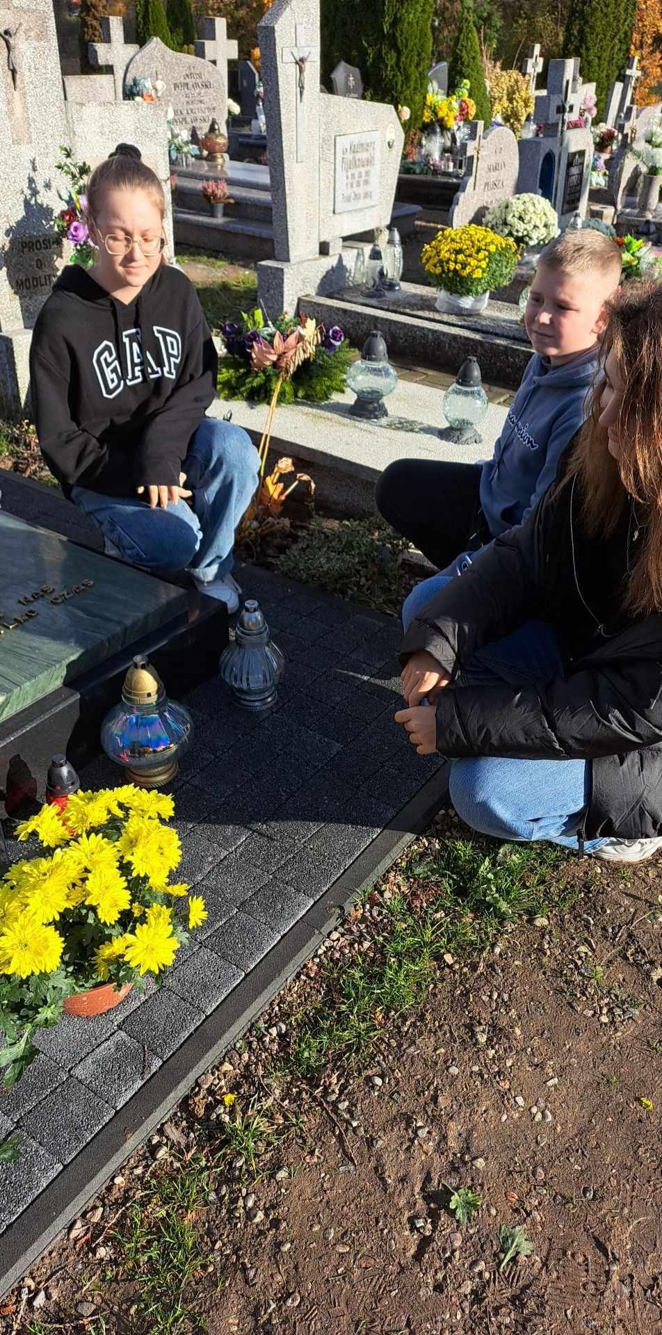 Uczniowie odwiedzają groby pracowników szkoły