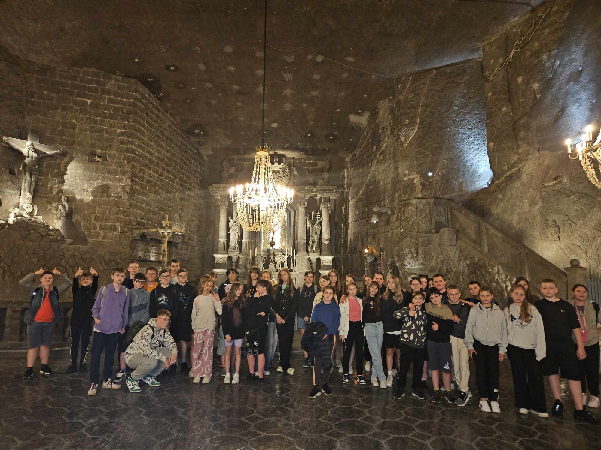 W ubiegłym tygodniu uczniowie klas 5-8 uczestniczyli w wycieczce. Podczas wycieczki odwiedziliśmy trzy niesamowite miejsca: Wieliczkę, Kraków oraz Zakopane. Pierwszym punktem naszej trasy był niezwykły spacer po Kopalni Soli w Wieliczce. Podziemia kopalni zachwyciły nas swoją historią i architekturą - chodząc po wykutych w soli korytarzach i komnatach, czuliśmy się jak w innym wymiarze. Spacerując tam, nie mogliśmy oderwać wzroku od olbrzymich kryształów soli i słuchając opowieści przewodnika, przenieśliśmy się do świata trudnej pracy górników. Następnie udaliśmy się do Krakowa, gdzie Stare Miasto zrobiło na nas ogromne wrażenie. Rynek Główny był pełen tętniącego życia i barwnych kamienic, a kościoły emanowały niepowtarzalnym klimatem. Spacerując po uliczkach miasta z przewodnikiem podziwialiśmy piękno architektury oraz atmosferę rynkowych stoisk pełnych lokalnych wyrobów. Muzyka uliczna dodawała uroku temu magicznemu miejscu. Na zakończenie naszej niezapomnianej przygody pojechaliśmy do Zakopanego. Chodzenie po górskich szlakach wśród malowniczych krajobrazów Tatr to prawdziwa przyjemność dla oczu i duszy. Oddech świeżego powietrza, zapierające dech w piersiach widoki oraz bliskość natury pozwoliły nam odpocząć od codziennego zgiełku. Szlaki górskie, które pokonaliśmy w Tatrach, dostarczyły nam wiele emocji i adrenaliny. Widoki ze szczytów były przepiękne, a trudności trasy sprawiły, że czuliśmy się jak prawdziwi zdobywcy górskich szczytów. Cała wycieczka była doskonałą okazją do poznania polskiej historii, kultury i przyrody oraz do wykreowania niezapomnianych wspomnień z najlepszymi przyjaciółmi. Jesteśmy pewni, że ta wyprawa na zawsze pozostanie w naszej pamięci jako jedno z najbardziej udanych doświadczeń szkolnych.